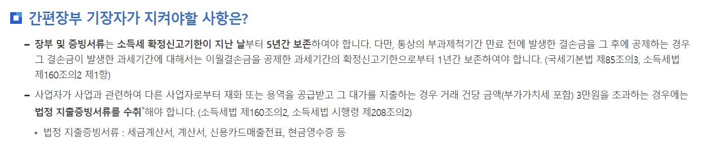 - 세금계산서, 계산서, 신용카드 매출전표, 현금영수증, 간이영수증, 원천징수영수증 등을 바탕으로 종합소득세 절세가 가능하기 때문에 사업 관련 지출에 대해 증빙자료를 꼭 수취