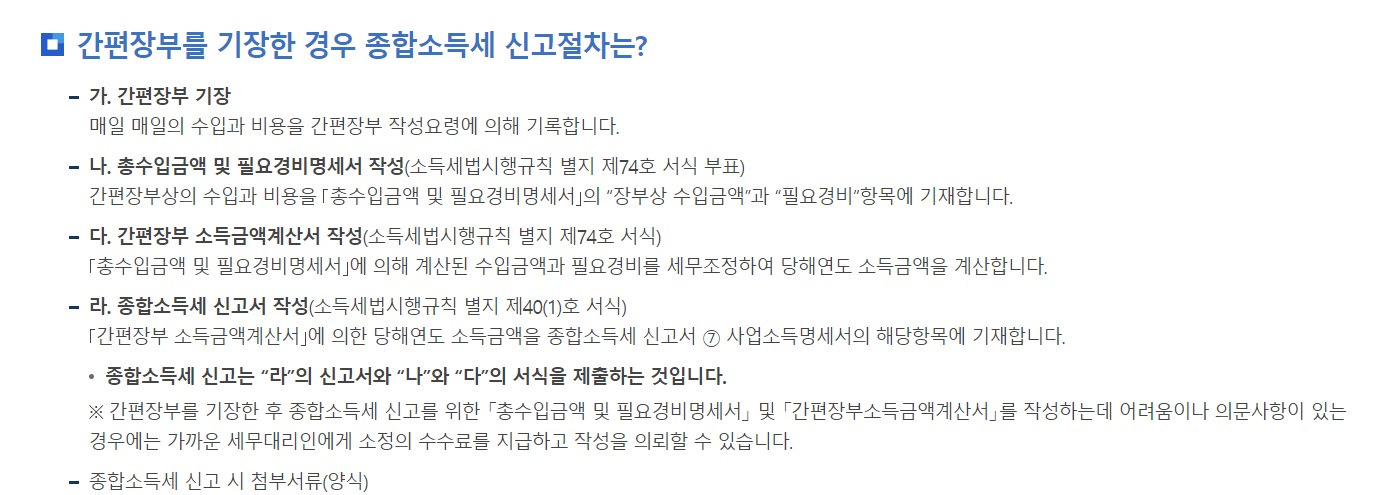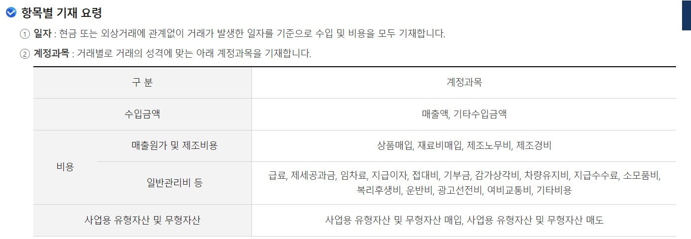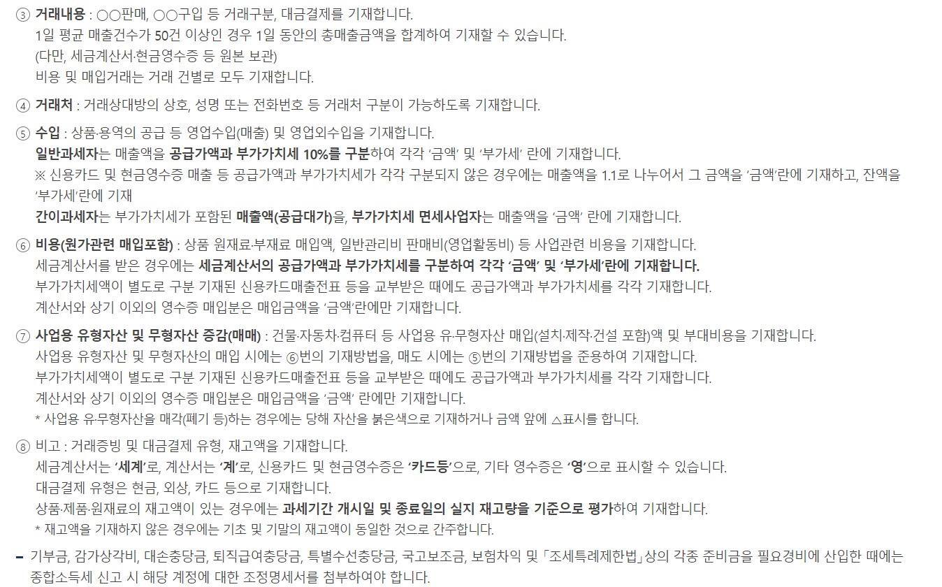 다음은 소득이 간단한 간편장부 작성법 입니다(국세청 참조)